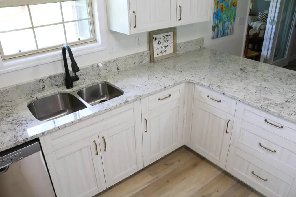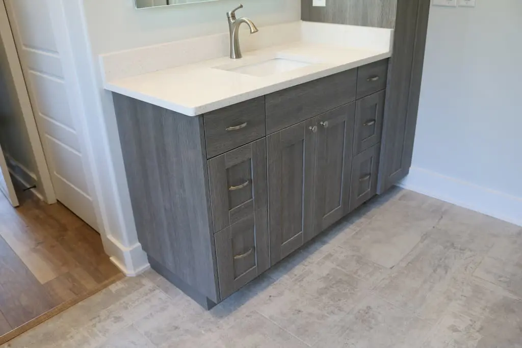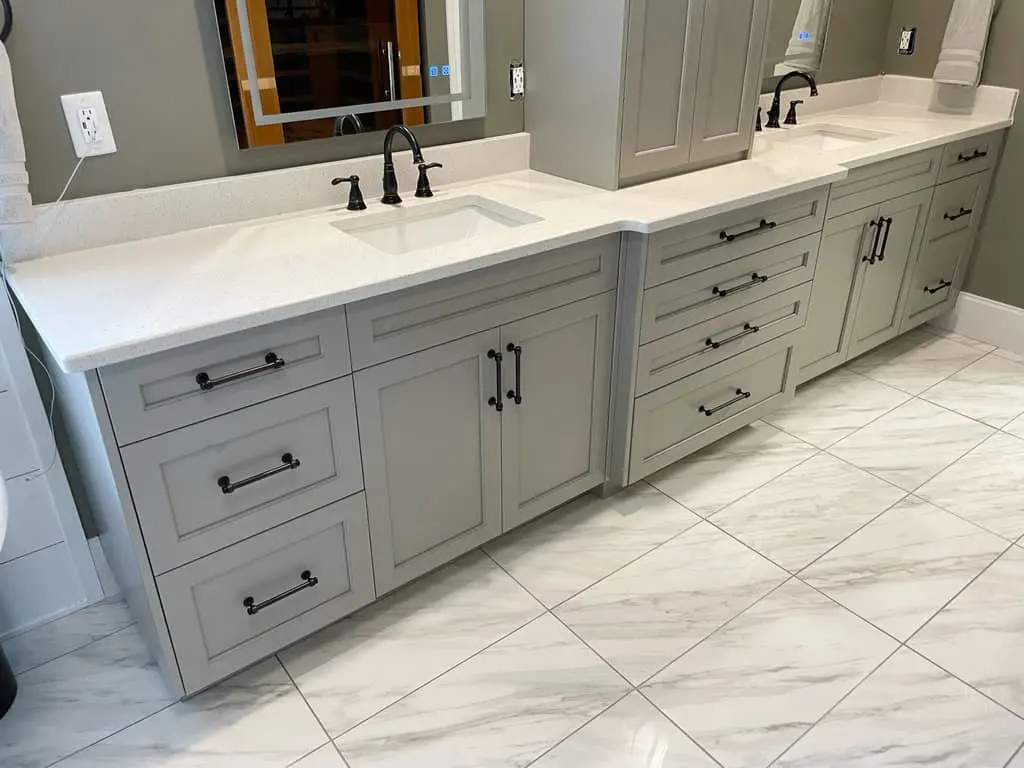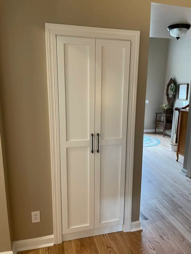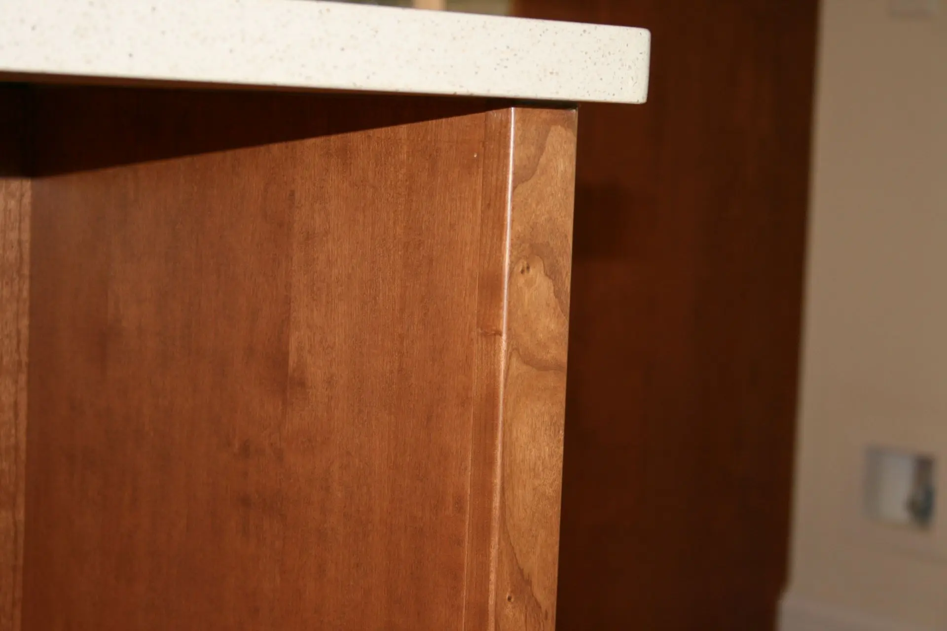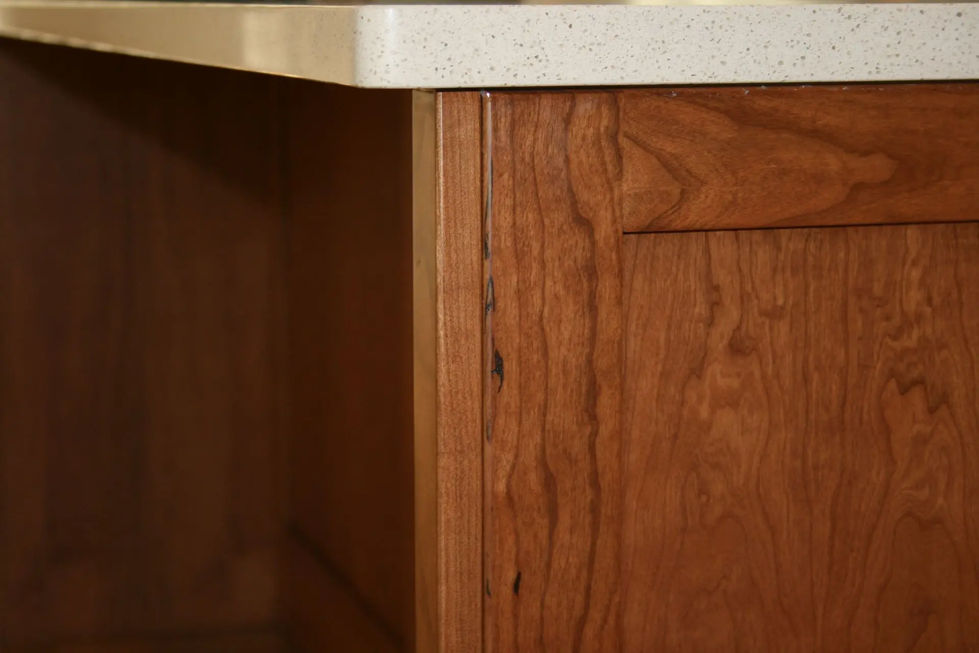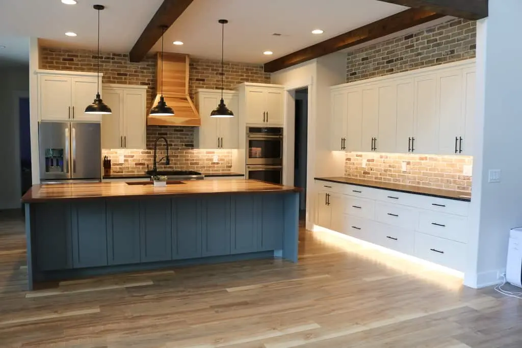 Shaker cabinets are made from a five-piece door, which comprises a four-piece frame with a flat panel in the center. These cabinets are traditionally made from high-quality American wood, but it's now fairly common to see them manufactured from MDF as five-piece or one-piece doors and painted in pretty much any color under the sun. For a more modern look, some homeowners will paint the upper cabinets one color, and then use a different paint or wood stain for the lower cabinets.