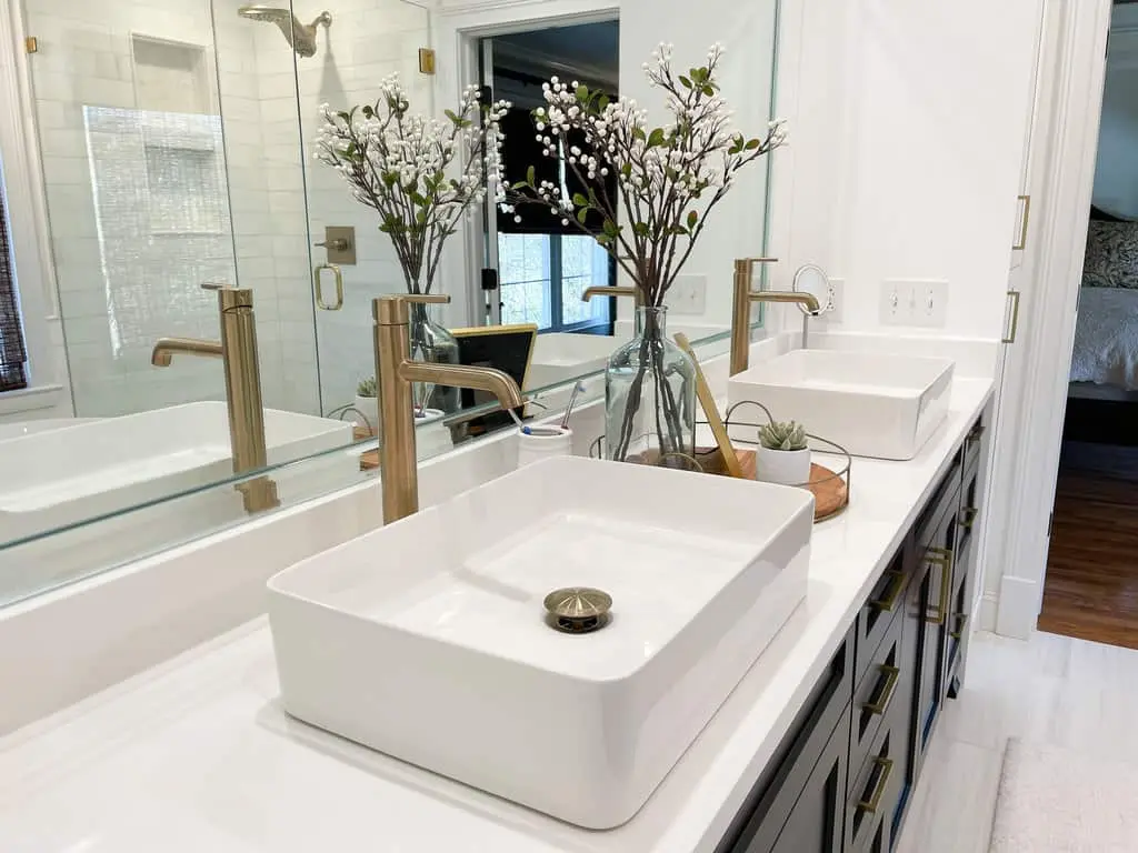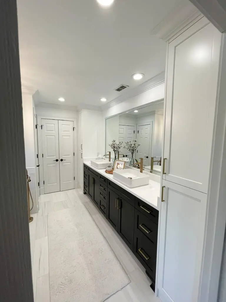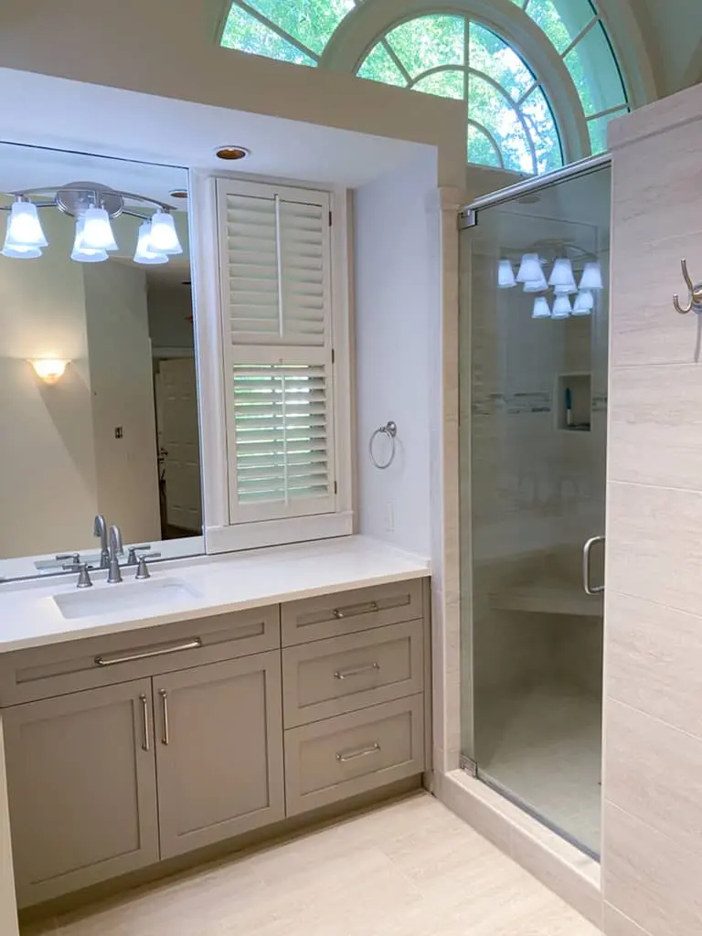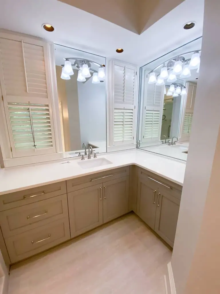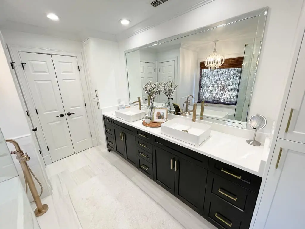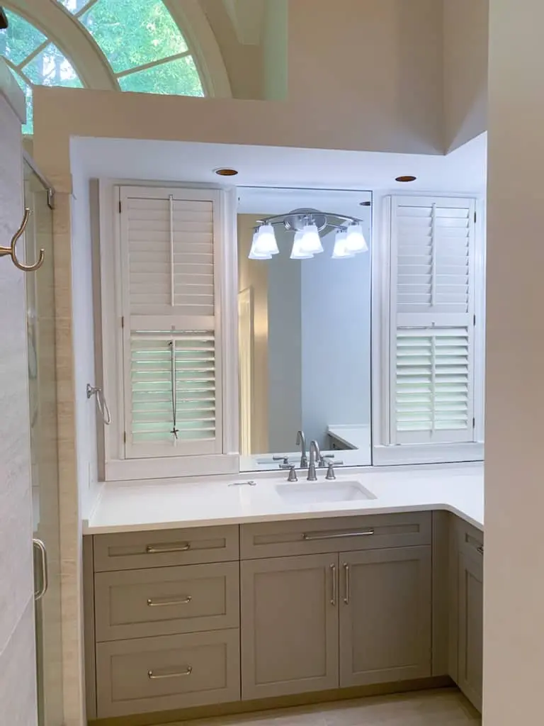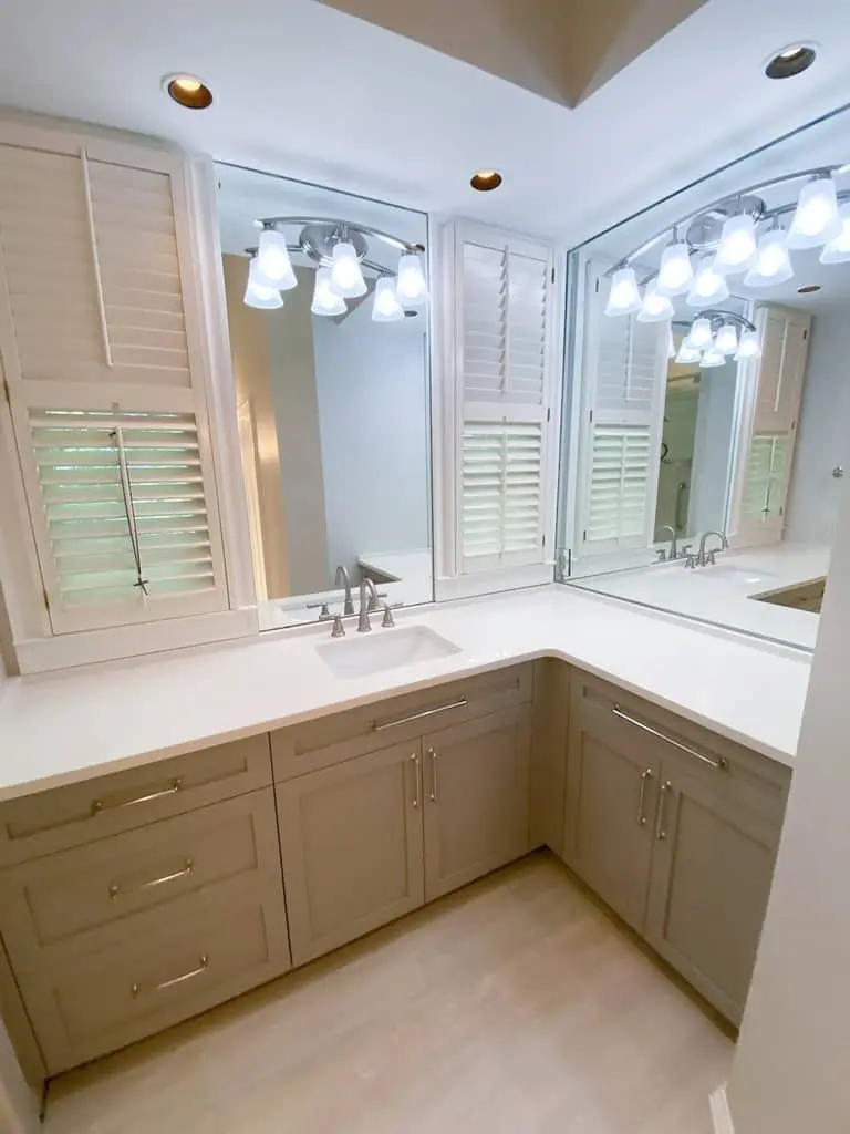 Shaker cabinets are made from a five-piece door, which comprises a four-piece frame with a flat panel in the center. These cabinets are traditionally made from high-quality American wood, but it's now fairly common to see them manufactured from MDF as five-piece or one-piece doors and painted in pretty much any color under the sun. For a more modern look, some homeowners will paint the upper cabinets one color, and then use a different paint or wood stain for the lower cabinets.