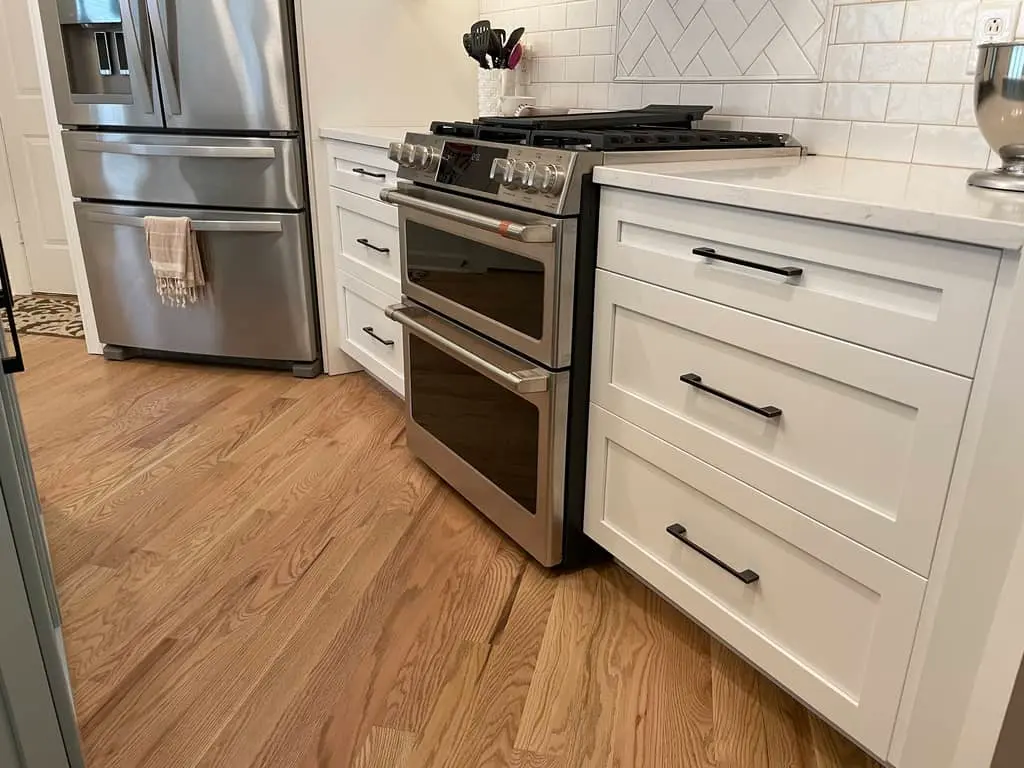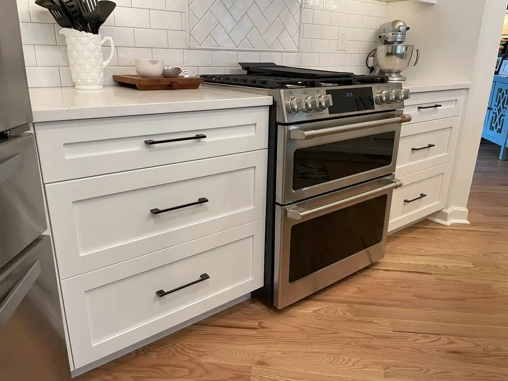 Martha Stewart says that Shaker is the most stylistically versatile cabinet design. Thanks to its simple frame and panel structure, these cabinets blend in with either a traditional or a contemporary look. The style originates from the Shaker religious group that fled to the American colonies in the 1780s; the group became known for their simple, utilitarian, and smart design, including the famous peg rail.
